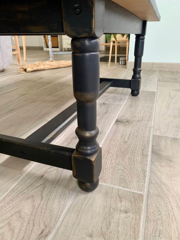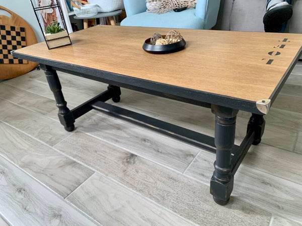 Je suis une ancienne table rustique, révalorisée en une belle table style industriel très tendance.