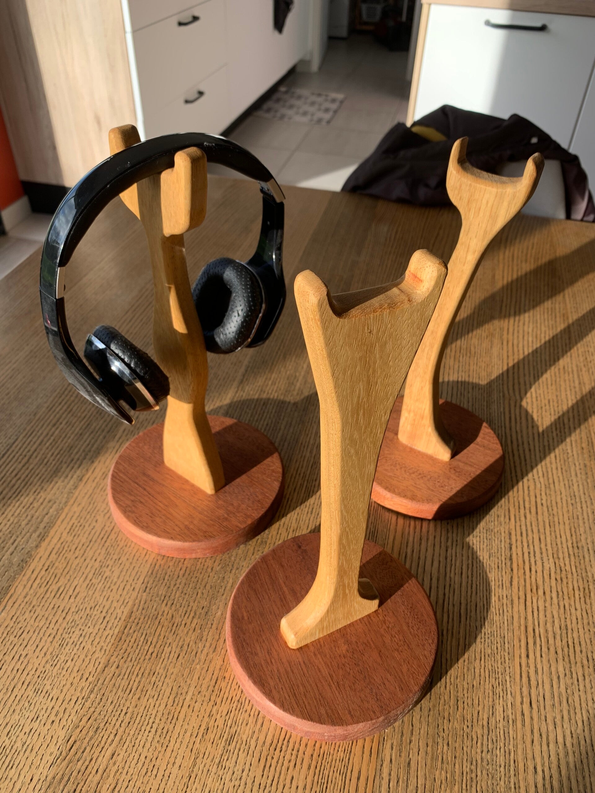 Support pour casque en bois, pièce unique