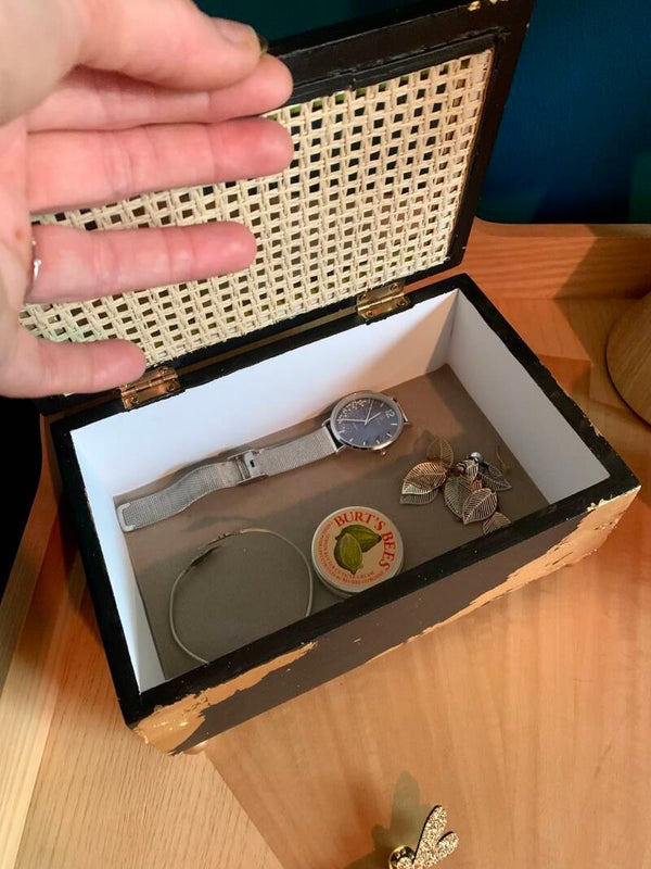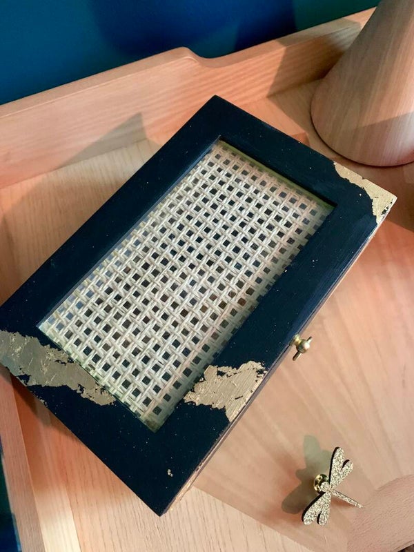 Cette boîte revisitée est idéale pour organiser vos bijoux, montres, accessoires ou petits trésors personnels. Elle fait également une belle pièce de décoration sur une coiffeuse, une étagère ou une table de chevet. Le porte-étiquette permet d’ajouter une touche personnelle.