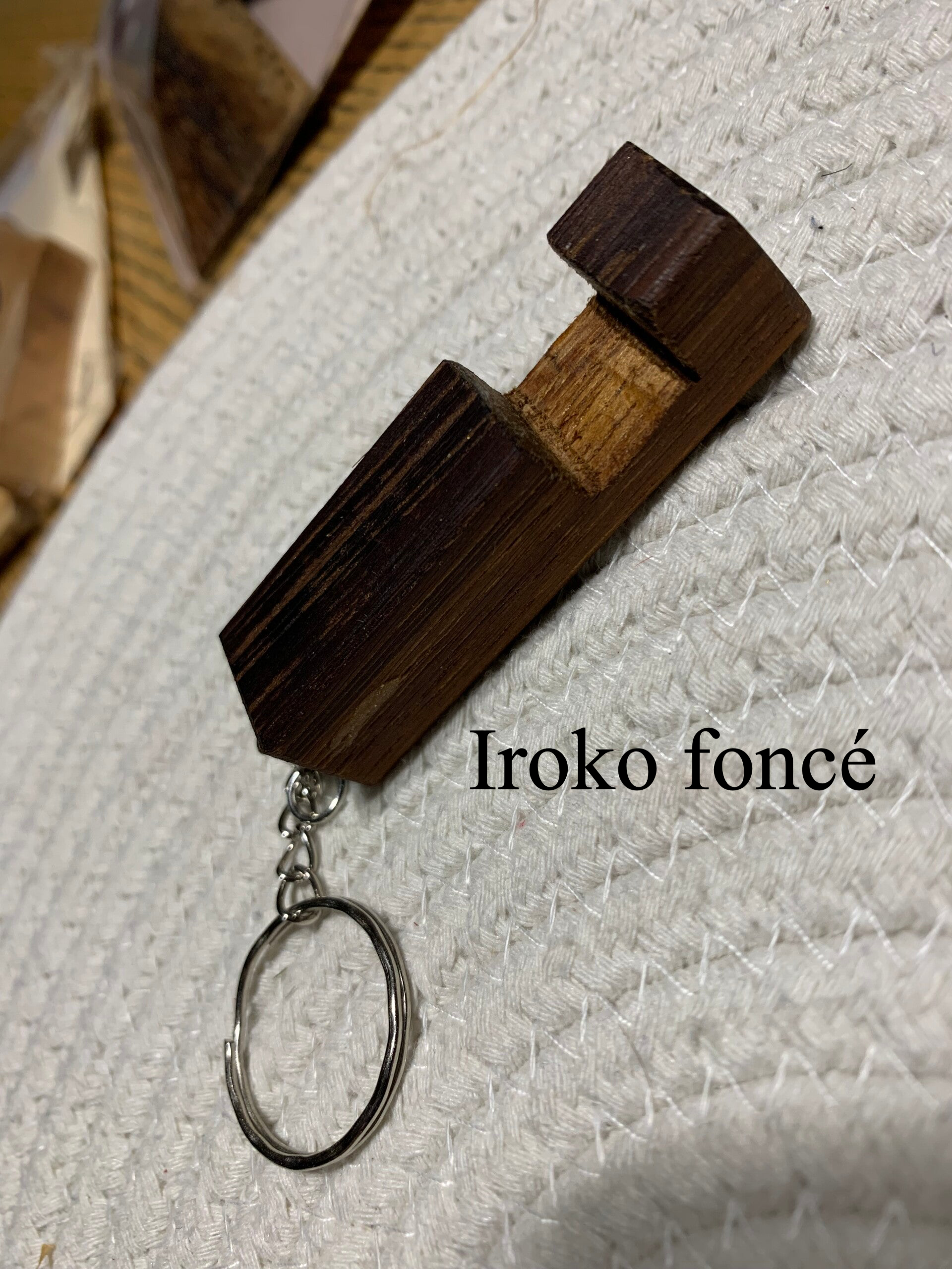 Chaque porte-clé est unique, car il est fait à partir de bois aux textures et nuances naturelles propres à chaque pièce.