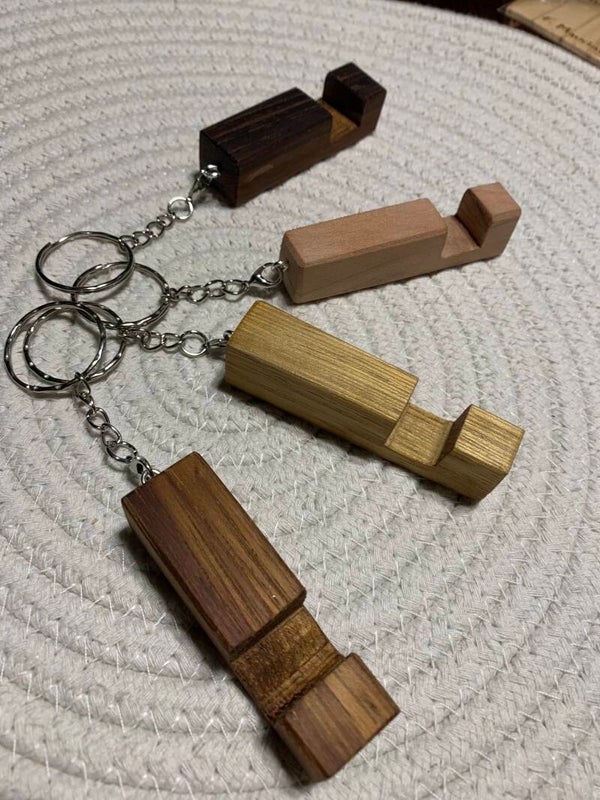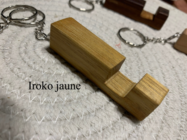 Porte-clef support smartphone en bois recyclé