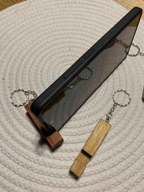 Ce porte-clé en bois recyclé est bien plus qu'un simple accessoire : il se transforme également en support pratique pour smartphone, vous permettant de regarder vos séries, films ou reportages préférés en position horizontale.