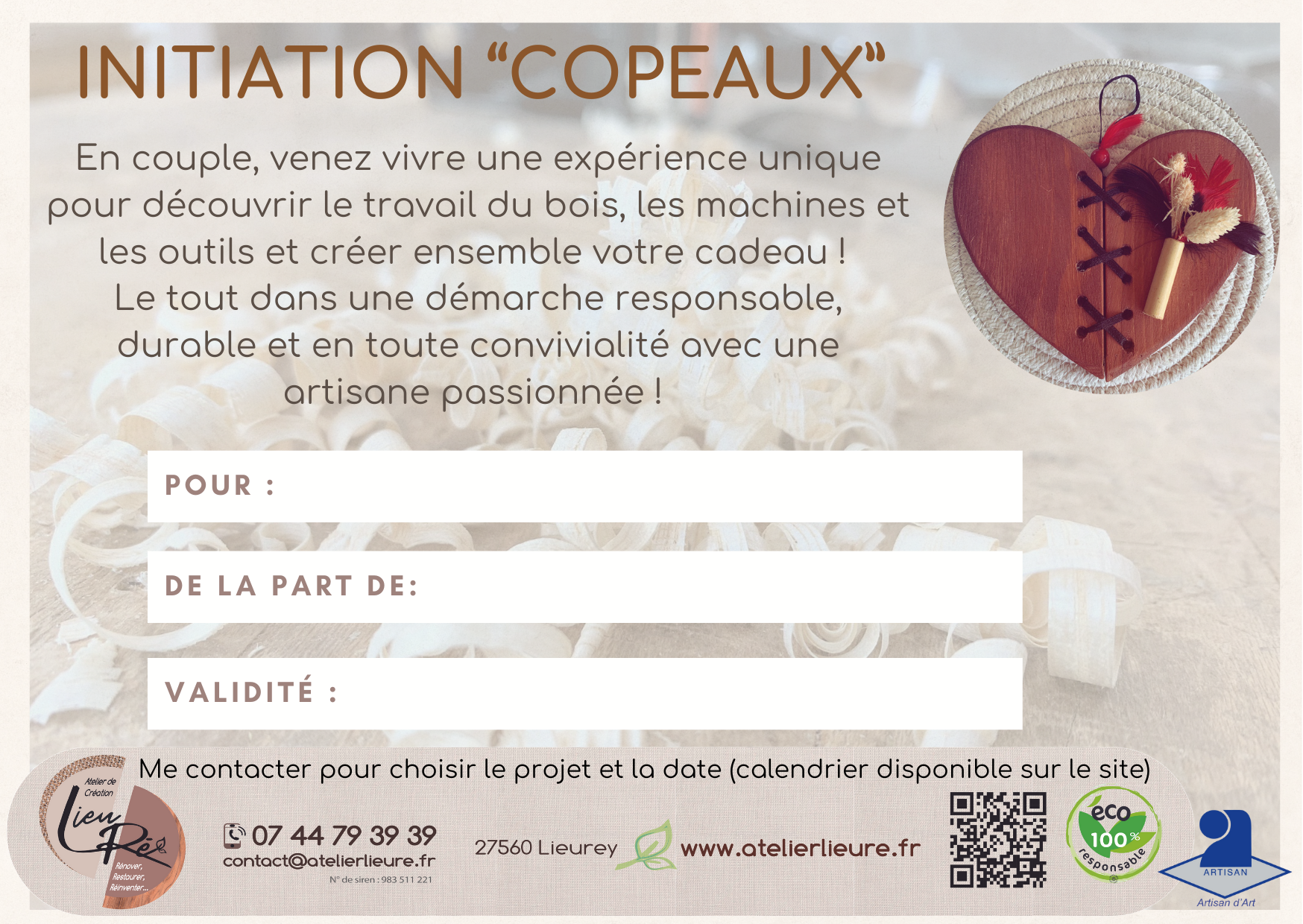 C'est ce que je vous propose avec ce chèque cadeau d'initiation "copeaux".