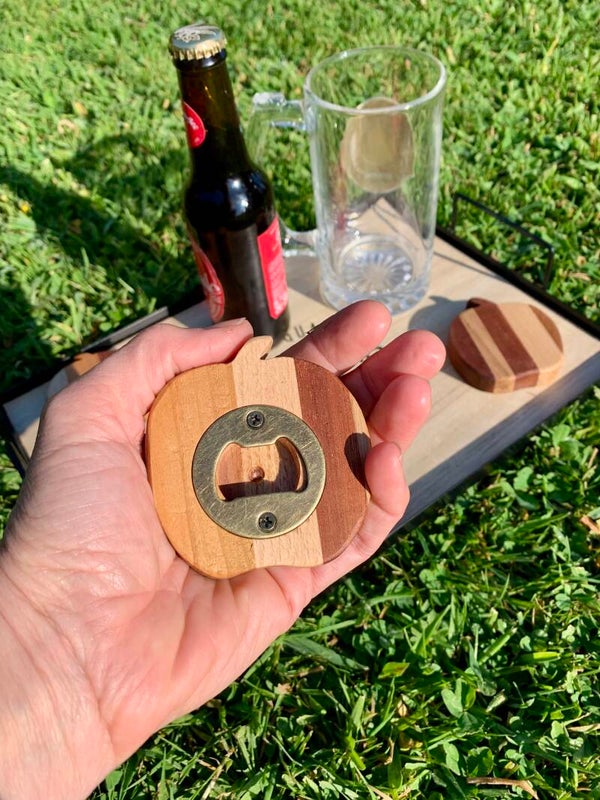 Chaque pièce est unique et issue de la valorisation de chutes de bois sélectionnées pour leur diverses essences et couleurs (Chêne, merisier, hêtre et okouné).