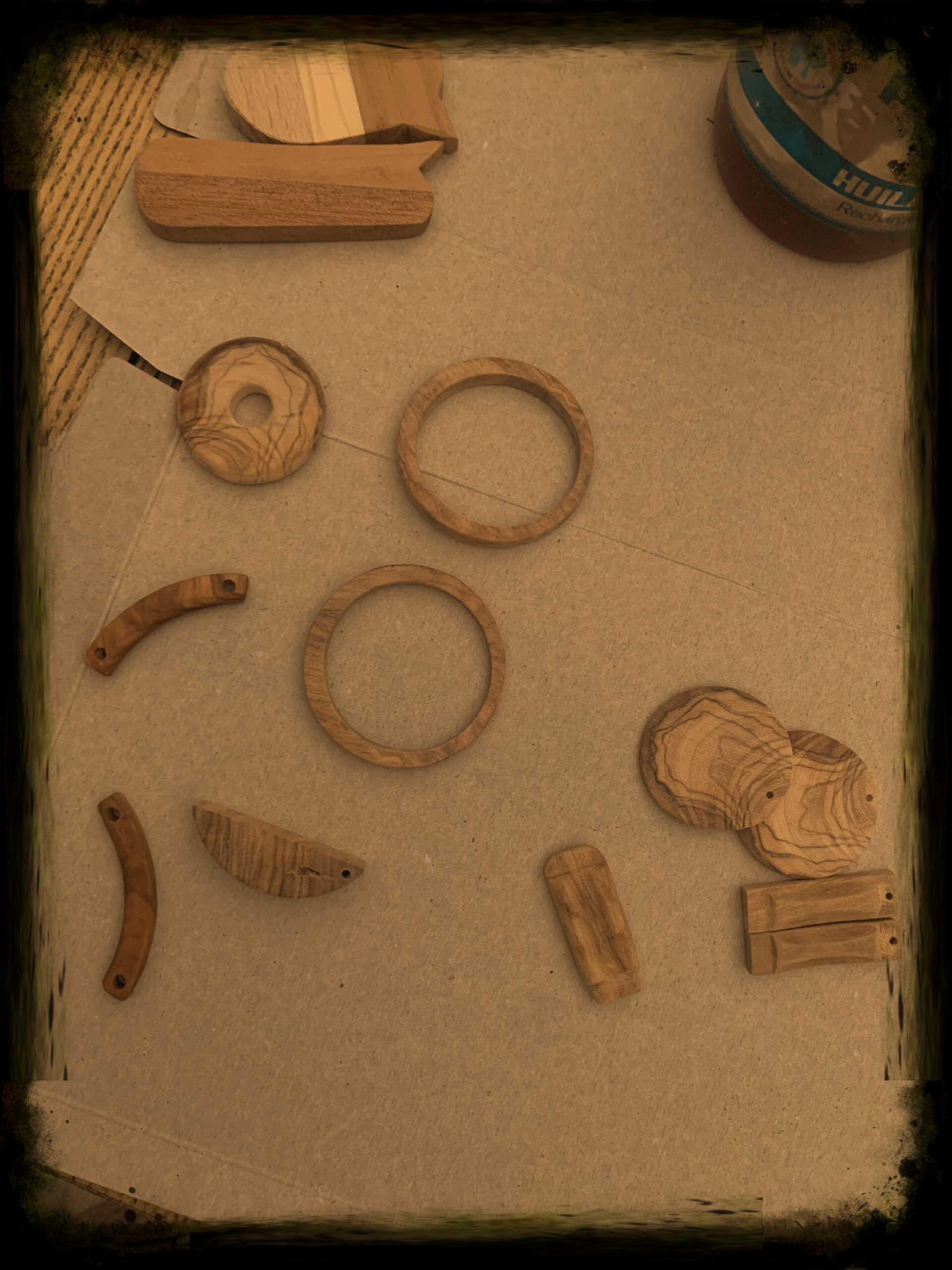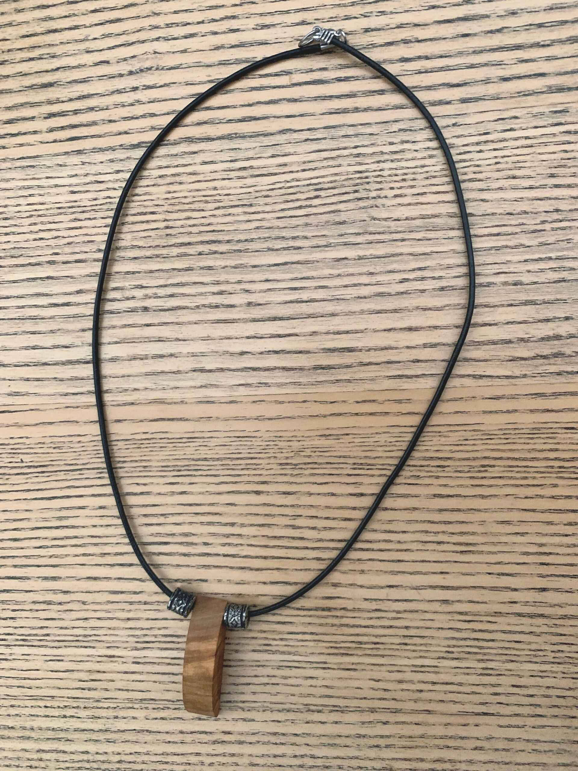 Le bois d'olivier a été prélevé sur un objet en bois d'olivier, réutilisé pour en faire ce pendentif unique.