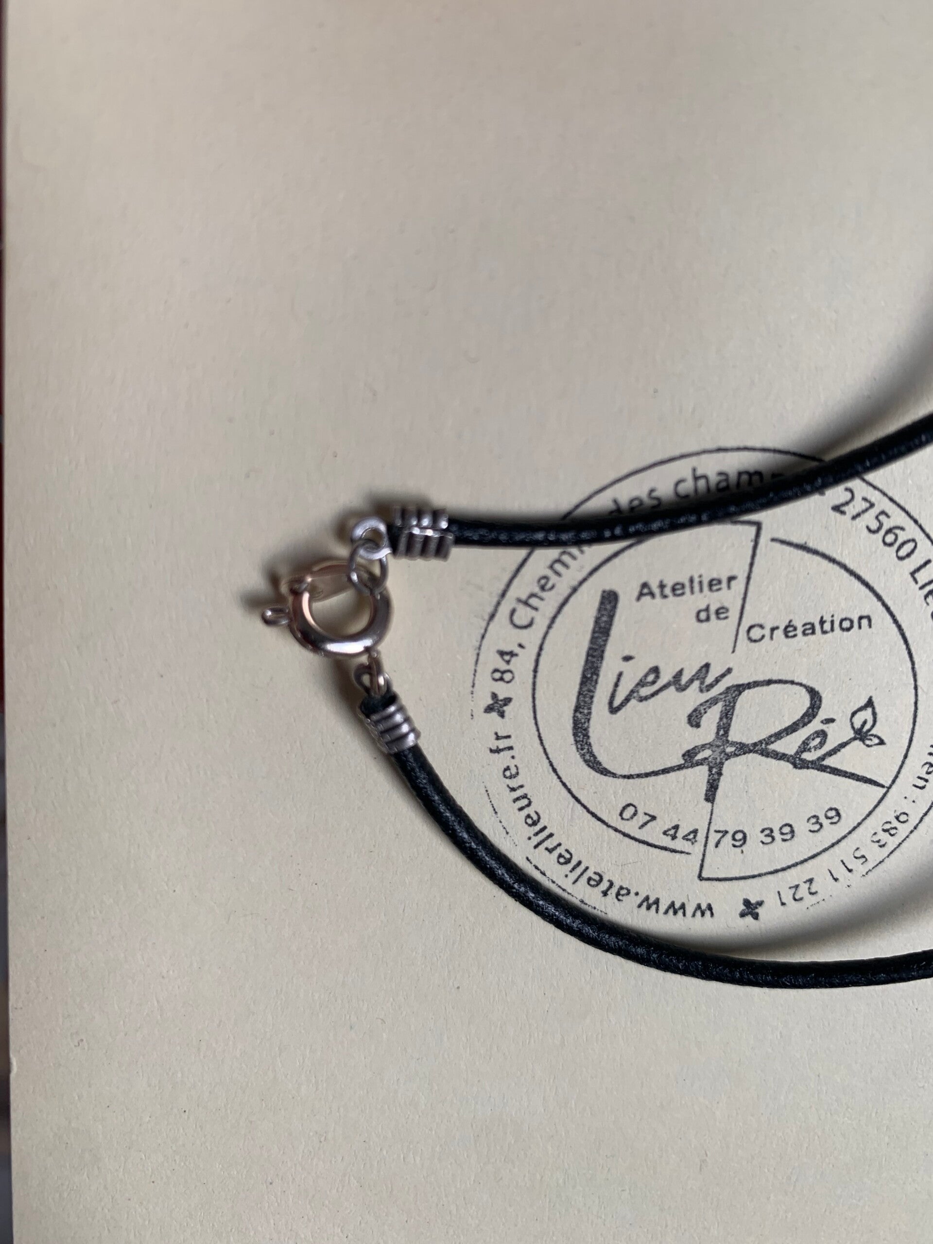Ce collier est une pièce unique, en cuir et en bois multi-essences issu du réemploi des matières.