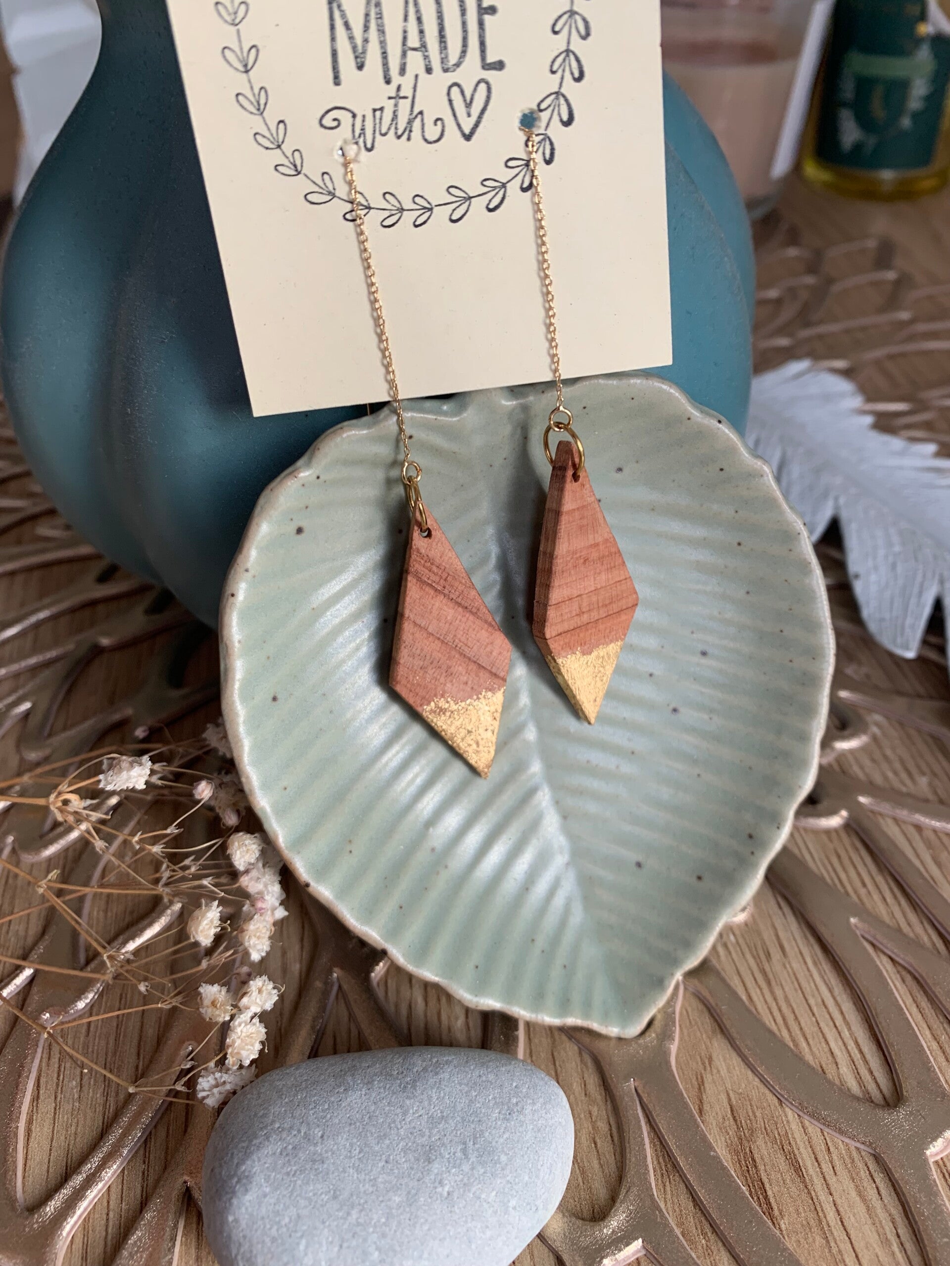 Boucles d'oreilles traversantes en bois de séquoia et feuille d'or