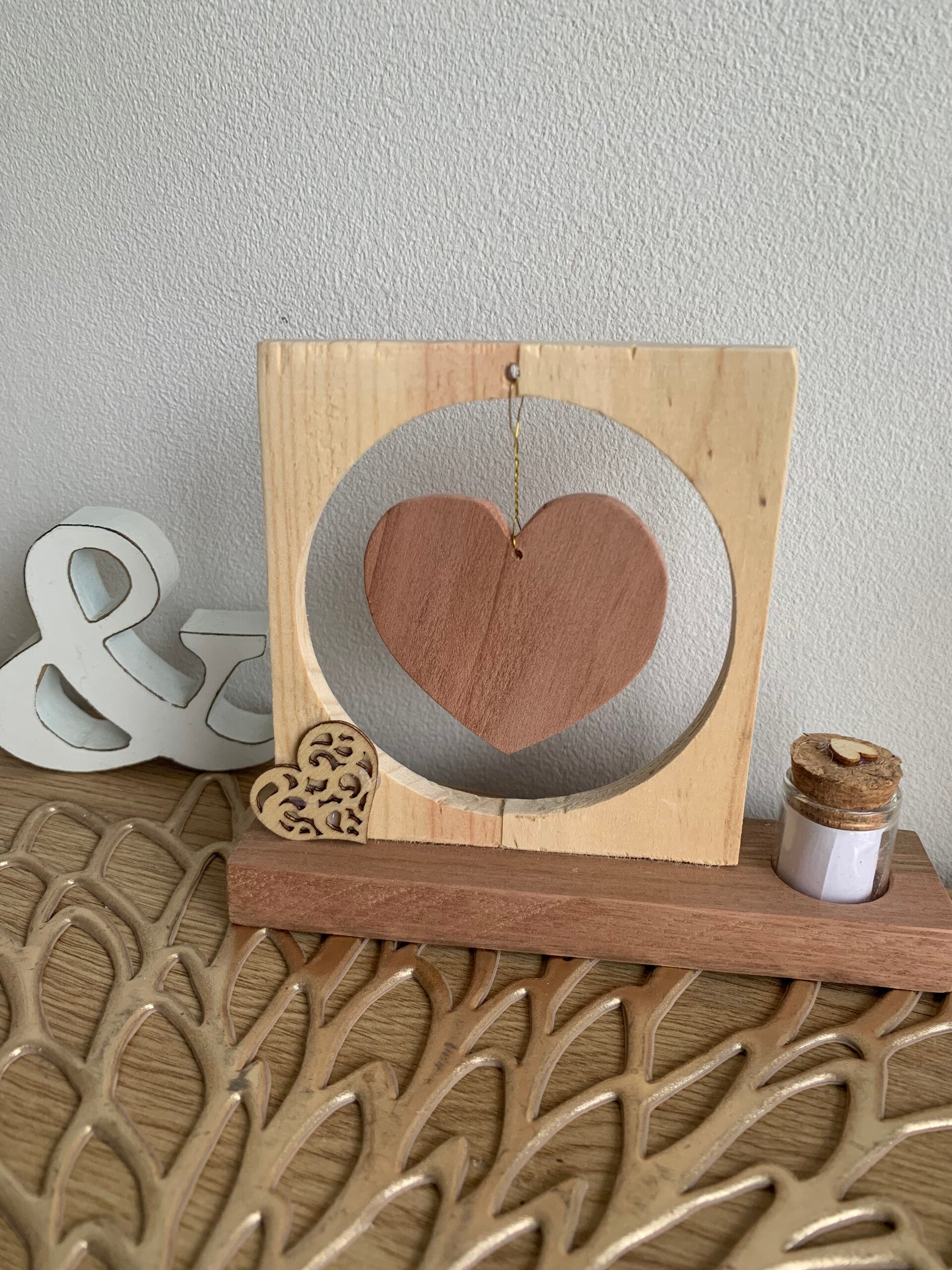 Décoration en bois avec coeur suspendu