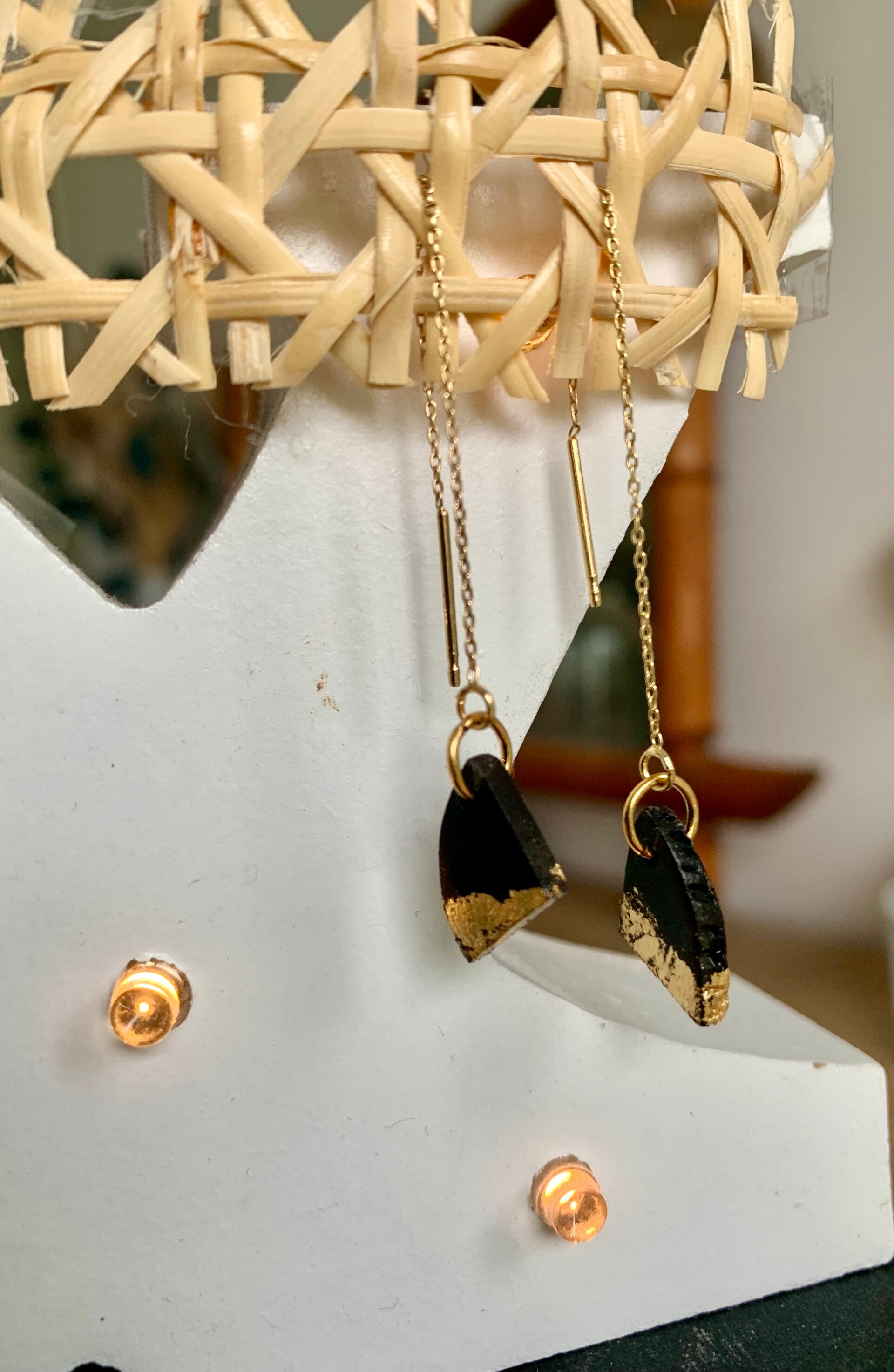 Boucles d'oreilles traversantes en bois d'ébène et feuille d'or