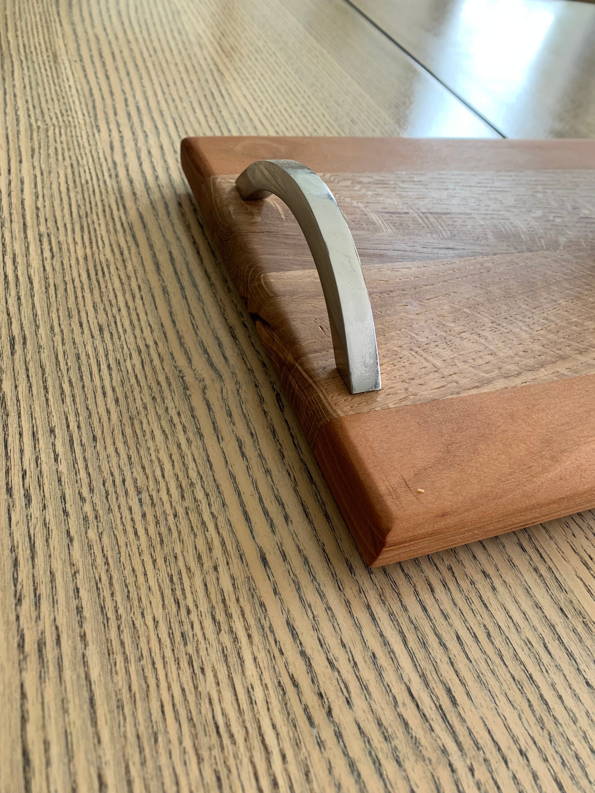 C'est en sauvant des chutes de bois de mon atelier et d'ateliers locaux que je confectionne mes planches à découper et plateaux de service.