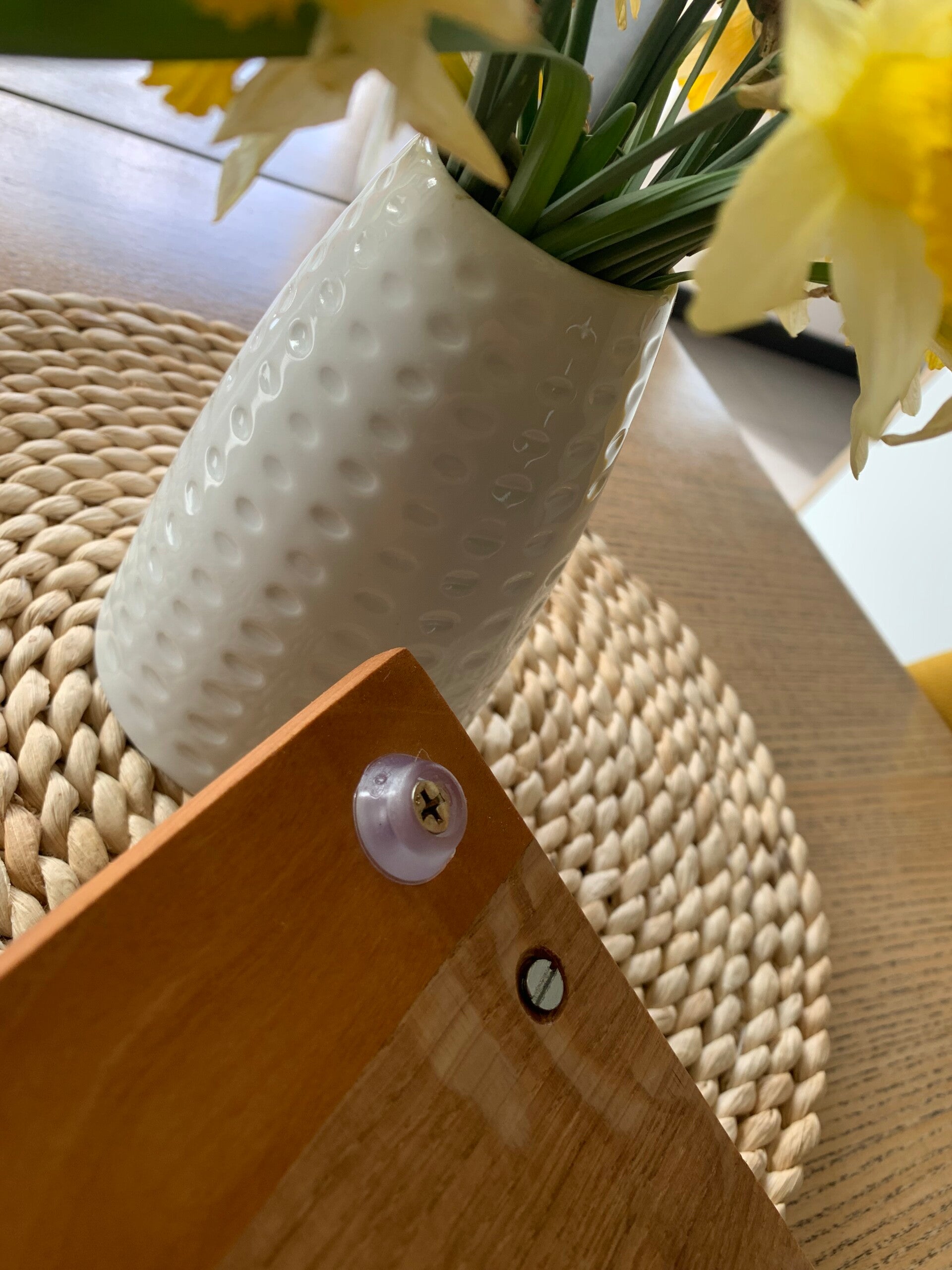 Je lui ai mis des poignées en métal et des pieds pour un coté plus pratique.