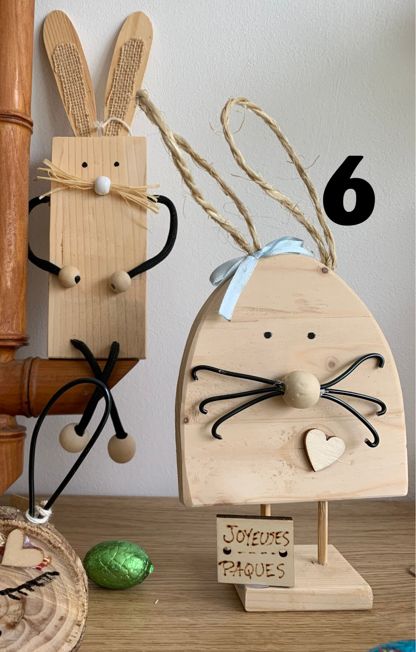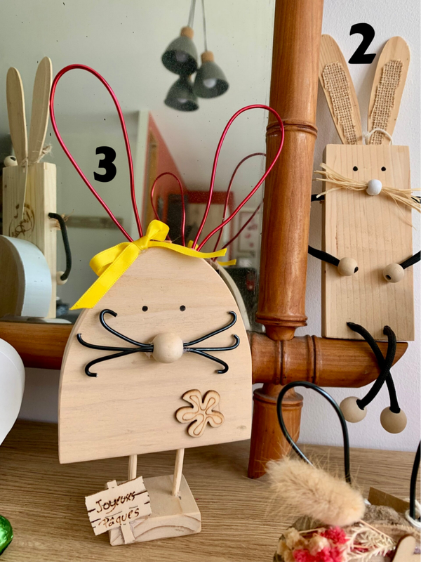 Ces lapins sont des pièces uniques, réalisés à partir de chutes de bois, donc durables et éco-responsables !