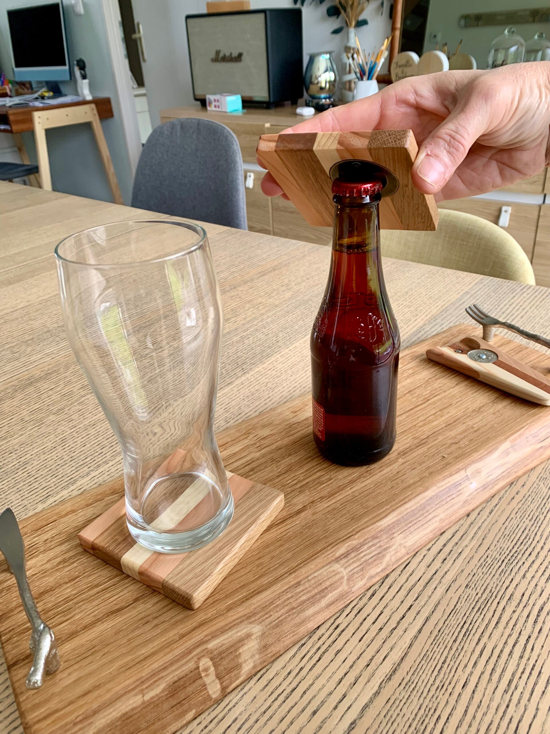 Très pratique car 2 en 1, ce joli sous-verre est aussi un décapsuleur !